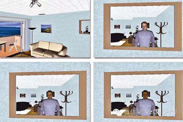 第一步,追踪。例如,利用头盔式显示器追踪一个人在现实世界中的运动轨迹,当他(她)走动时,我们可以追踪到他(她)的位置,不断测量他(她)在物理世界中的运动轨迹。