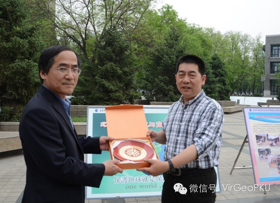 北京大学地球与空间科学学院主管本科生教学的副院长刘建波向国土资源部实物地质资料中心赠予了纪念品。