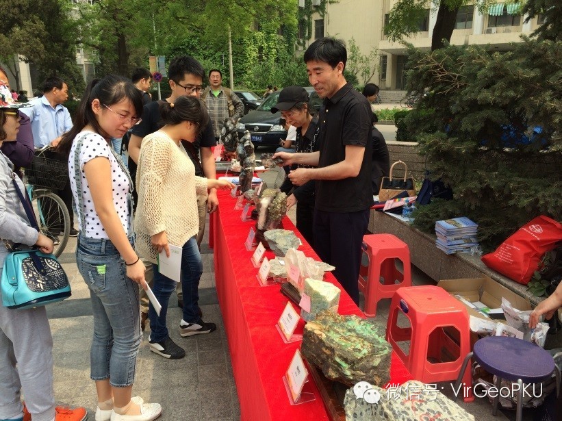 在活动期间,北京大学地球与空间科学学院院长张立飞,副院长刘建波、副院长张飞舟、党委副书记于超美与国土资源部实物资料中心资料服务室副主任任宝成、教授级高级工程师苏桂芬等一行八人及组织本次活动的师生的亲切交谈。张立飞院长充分肯定了天地人文化节系列活动的重要性,认为通过此次展出活动能让学生更好地了解矿产资源知识,理解保护我国矿产资源的重要性。