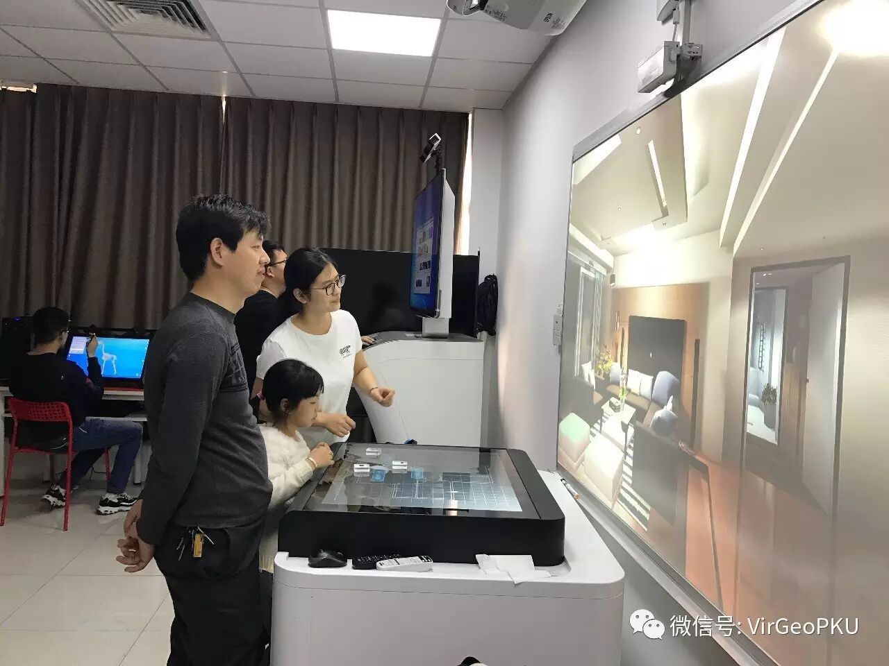 信息科学技术学院刘军华副教授和女儿体验AR台