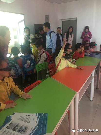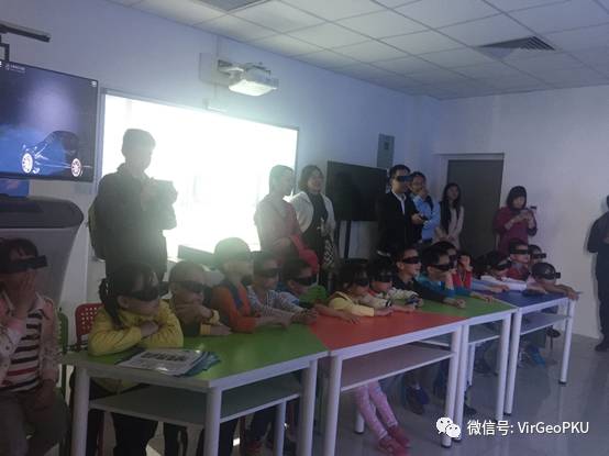北京大学幼儿园的小朋友们参观体验虚拟地球