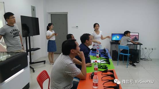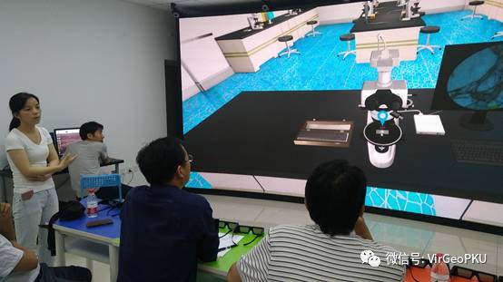 内容更加丰富多彩的实验室在2017年5月19日上午迎来了新的客人,来自中国石油大学(北京)地球科学学院盆地与油藏研究中心主任杨明慧教授,书记余一欣副教授,综合地质实习教学团队负责人、全国大学生地学技能竞赛专家组专家童享茂教授一行三人参观了北京大学沉浸式虚拟仿真教学实验室,并同我院主管教学的张进江副院长等举行了座谈。座谈过程中张进江副院长等为石油大学的领导们介绍了中心的主要建设情况,并针对性的回答了他们的问题。