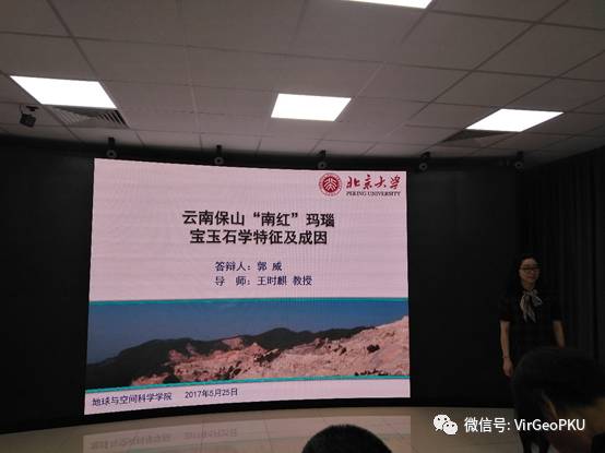5月25日,北京大学矿物学、岩石学、矿床学专业(矿产资源管理方向、珠宝学方向)的文茈燊、郭威、王芦笛三位硕士毕业生论文答辩。