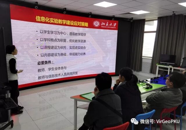 2017年10月27日,北京自然博物馆第一党支部在支部书记王宝鹏的带领下来到地空学院虚拟仿真实验教学中心参观访问。 首先在实验室主管负责人郭艳军主任的介绍下,支部一行人了解了VR技术的概念与相关技术、3D全息交互教学实验室的建设意义、主要情况及应用。 图为郭艳军主任在为大家进行实验室介绍 紧接着,郭主任以教学内容为例,向大家介绍了实验室的一些成果,包括地学教学标本的数字化、基本矿物标本的数字化和我们初步建立的野外地质实习移动服务工作站,这一系列的工作能够基本实现野外标本——实验室微观数据——基本科学内容的和谐统一。 最后在学生助理秦婉莹的演示下,大家体验了虚拟地球VR系统的各个搭建场景,并进行了实际操作。 图为郭主任在为大家介绍虚拟野外实习系统和移动工作站 上图为大家在体验虚拟地球场景 经过本次参访体验,大家纷纷意识到深入研究本专业基本内容的重要意义,只有直面科学研究与科学普及过程中遇到的问题,确定两者的相通与不同,构建并完成不同专业领域的跨学科综合,才能实现科学知识的完美呈现。这一点,于地球科学来说如此,于实验教学和博物馆建设发展来说更是如此。 地空学院虚拟仿真教学实验室欢迎来自各行各业的大家来访,真诚期待您的宝贵意见! 快来开启你的VR之旅吧! 扫描二维码 关注我们哦~
