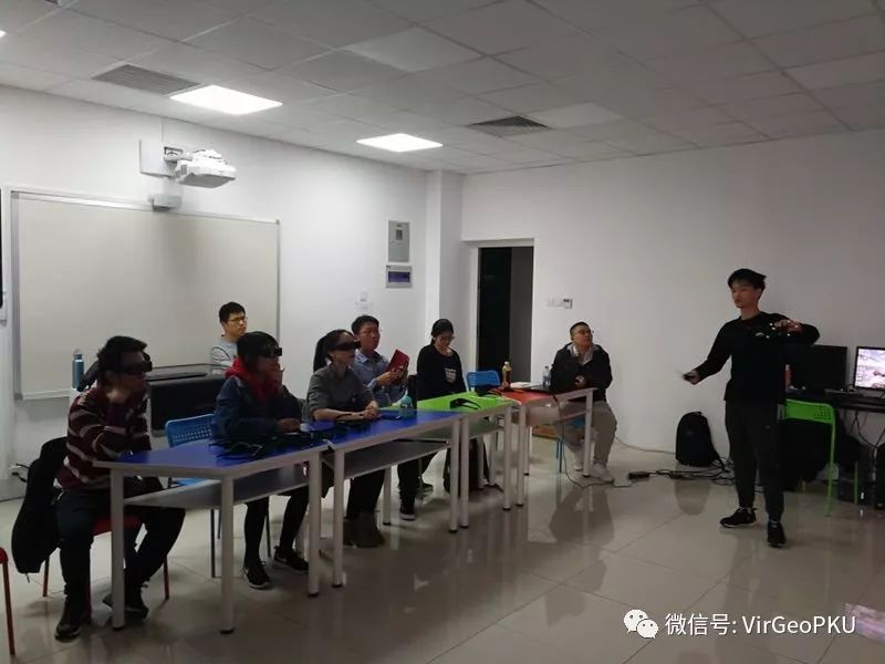最开始接触3D电影以来,就对这种高科技充满了敬畏和好奇。以前也有过VR体验,但和这次自己实践操作的感觉很不一样。当了解到地学楼3522开设了虚拟仿真实验教学中心的时候,我们便对实验中心的设备和教学内容产生了浓厚的兴趣,向往能参与到其中。这次很荣幸有机会进入到地球科学虚拟仿真实验教学中心试运营组织小组并成为其中一员,并在2018年3月22日下午进行了第一次实践培训。在这里,展开了全新的体验。