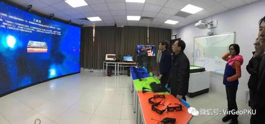 2018年3月21日上午,北京大学电视台百廿校庆宣传片制作团队来到地球与空间科学学院沉浸式虚拟仿真教学实验室采集素材,适逢地空学院院长张立飞教授,院党委书记、副院长李培军教授,副院长、国家级实验教学示范中心常务副主任张进江教授,中组部“千人计划”引进人才洪阳教授莅临实验室参观指导工作。 工作人员为来访者演示操作 地质系实验教学中心主任郭艳军高级工程师向来访人员介绍了各个设备的功能,实验教学中心熊文涛工程师进行了演示操作,并为来访者演示了虚拟显微镜、虚拟野外地质实习、虚拟博物馆等教学经典案例。此外,实验室工作人员还演示了虚拟地球、Z-Space虚拟仿真课件、AR台野外实习及室内手标本观察学习案例及全息台矿产资源开发方案设计等案例。 张立飞院长体验Z-Space虚拟仿真课件 参观之余,张立飞教授和洪阳教授对实验室的建设情况给与肯定。李培军教授和张进江教授体验了实验室各个设备新增的功能和课程,并针对实验室课程开发如何与教学和科研更好地结合提出了许多建设性意见。对实验室未来的发展有着重要的意义。 来了解一下我们的实验中心吧 北京大学国家级地球科学虚拟仿真实验教学中心成立于2012年,全面负责地质学、地球物理学、地理学和大气科学4个一级学科的教学、建设和管理工作。在建设过程中,为了满足地球科学教学中对实验教学不断增长的需求和解决野外实习成本高、实验消耗大,地震波或太阳风等真实实验不具备或难以完成的、不可及或不可逆的操作等问题,国家级地球科学虚拟仿真实验教学中心提出将地球学科专业与信息技术深度融合,积极探索虚拟仿真实验教学作为虚拟仿真实验教学中心建设的重要内容,并建成了北京大学地球科学沉浸式3D全息交互虚拟仿真教学平台。平台于2017年3月15日正式开放投入使用。 全新体验新鲜出炉 此后持续进行课程开发建设,实验室配备了以微密小间距LED弧形屏幕为3D沉浸式立体显示系统,多套虚拟现实头盔,以OPEN-VRP虚拟现实引擎、感知识别模块、AR模块、交互体验系统等核心部分组成的AR台,全息图形操作台,支持“虚拟全息技术”的Z-Space系统。已完成野外地质考察实践路线全景介绍,虚拟显微镜实验室,Z-Space地质学相关学科课件建设,AR台野外实习和结晶学与矿物学课程结合,全息台矿产资源开发方案设计,VR头盔谷歌地球沉浸式体验等多个滴地学相关的课程建设,有力提高了同学们的学习积极性和教学资源的有效利用。 该平台的建设过程中,得到了“教育部修购基金”“2016年北京大学本科教改项目”“2016年北京大学实验教学改革经费”等多项资金支持。沉浸式3D全息交互虚拟仿真教学平台的建设吸收了国内外先进的虚拟仿真技术,满足了多时空、多尺度的地学实验教学需求,将传统教学课堂和虚拟仿真技术进行了融合,将多媒体教学从二维平面变成三维立体交互的教学环境,为培养通识人才提供了优质的教学资源和高水平的教学环境。 小编说了这么多,大家还在等什么呢,赶紧关注预约,来逸夫二楼3522一起体验吧!!!