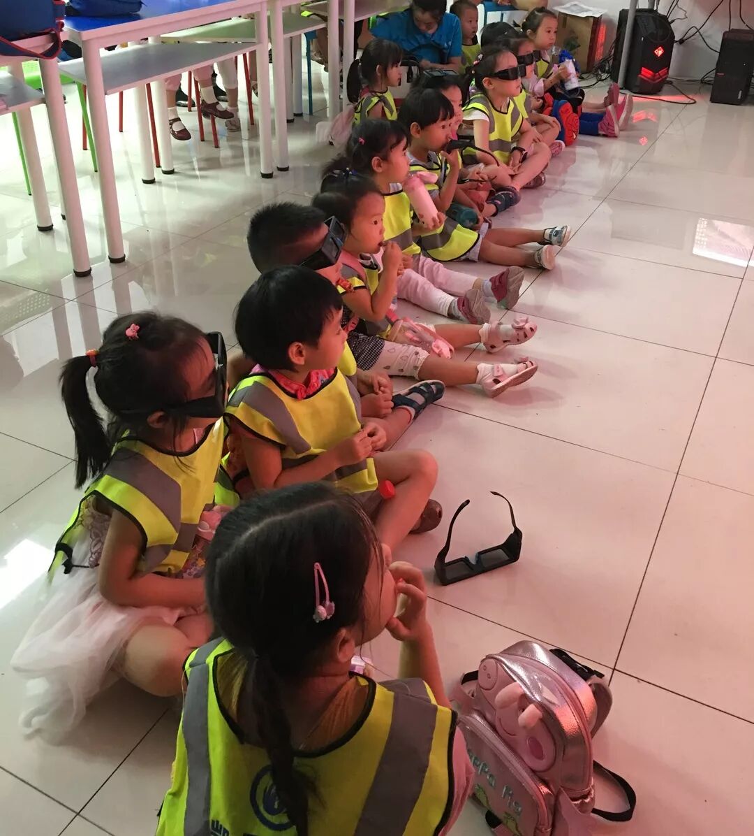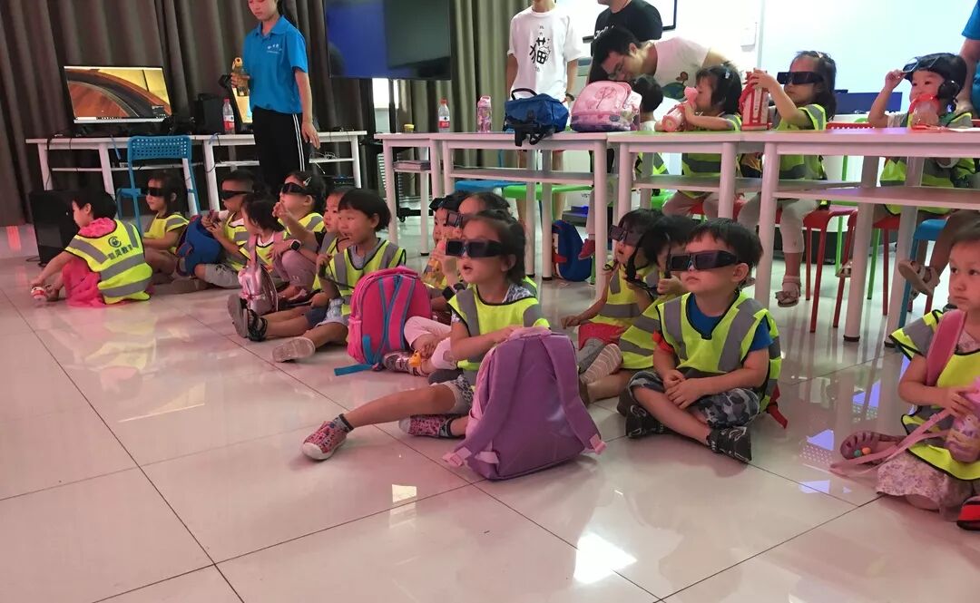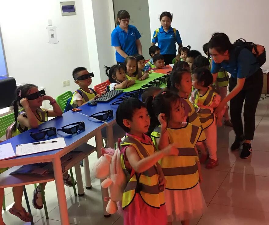 “哦下周五过来参观虚拟仿真实验室的是一群幼儿园的小朋友~” 早早接到了通知,激动又紧张! “幼儿园?萌娃!祖国的花骨朵呀!超级期待他们的到来~” “你可不能大意,这个年龄段的可是一群‘小魔王’,想hold住他们不容易的呀......” 2018年7月27日,二十几个穿着统一服装的小不点手牵着手浩浩荡荡进入到了虚拟仿真实验室——平均年龄不到三岁,最小的才一岁多,眨巴着blingbling的大眼睛,好奇地观察着实验室的每个仪器设备......萌化了老阿姨的一颗玻璃心~ “哥哥好”“姐姐好”...... 暴击o(╥﹏╥)o!! 与预想的“小魔王”形象不同,这是一群超级乖又有礼貌的小可爱们呀~ 带着满满好奇心贴近屏幕的小小少年 参观初始萌娃们就被大屏幕上的太阳系所吸引,在助教和老师的帮助下戴上了3D眼镜(其实小不点们的鼻子甚至有点挂不住大眼镜o(╯□╰)o),直观地体验虚拟地球。跟随于鑫大哥哥的展示玩得不亦乐乎,萌娃们展开了一场十分有趣又充实的探险之旅~ 于鑫大哥哥带着小朋友们玩转太阳系 随后幼教老师安排他们进行了“能量补充time”。小朋友们整齐坐下,分享零食,补充能量和水分。助教则趁此时间安排小朋友们观看了3D效果的科普动画。 盘地而坐分享零食也非常满足和开心的他们 限于小朋友们的身高、负重能力、认知能力等限制(毕竟都真的还是一群宝宝),提前设计好的好多项目如“汽车拆装”、“切水果”小游戏等都没能让他们体验到,有点遗憾呢(⊙︿⊙)...... 希望小朋友有机会再来呀(*❦ω❦)~