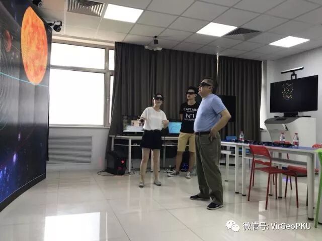 当下 ║ 2018.07.05 是什么带你了解虚拟仿真? 2018年7月4日,北京师范大学周明全教授,税午阳老师和周蓬勃老师等人来到了北京大学国家级地球科学虚拟仿真实验教学中心进行参观与指导。 郭艳军老师为周明全教授等人展示晶体矿物虚拟实验室 新鲜早知道 此外,我们虚拟仿真实验室又新添加很多虚拟场景,例如虚拟数字博物馆,体验者可以在博物馆中自由移动,360°无死角观察标本馆中的矿物,点击矿物还可以查看矿物的详细介绍,化学式、晶体结构、物理化学性质等,最重要的是可以点击出矿物晶体结构进行拆分,传统的晶体教学只有二维的结构图,排列与移动都需要学生们去详细,虚拟三维结构的呈现不仅可以让同学们更加直观的观察晶体结构,也可以通过拆分和组装让同学们将晶体结构了解透彻并且牢记于心。虚拟地磁的展示让同学们直观的了解了地磁的存在形式,卫星、月球等与地球的关系,太阳风暴对地磁的影响。 周明全,教授,博士生导师。教育部虚拟现实应用工程研究中心主任,文化遗产数字化保护与虚拟现实北京市重点实验室主任。兼任中国计算机学会理事,中国中文信息学会理事,北京市图象图形学学会副理事长,中国虚拟现实与可视化产业技术创新战略联盟理事长。周明全教授长期从事图形学和虚拟现实应用技术的创新性研究,在文化遗产数字化保护、颅骨面貌复原、数字医学、虚拟教育等领域取得系列研究成果,相继主持完成国家科技攻关、国家科技支撑计划、863计划、国家自然科学基金重点项目多项。获国家科技进步二等奖一项,教育部和省科技进步奖12项,发表SCI、EI收录论文120余篇,出版学术专著4部,发明专利12项。 关于周教授 周教授近距离体验观看太阳风暴对地球磁场的影响 周教授对我们实验室的设备与技术都非常了解,凭借他多年的经验为我们的实验室建设提供了许多宝贵的研究。本次周教授来我实验室参观指导,对我们虚拟仿真实验室的建设有着重要而深远的意义。