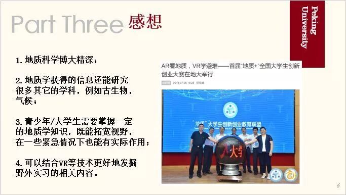 在自然环境中一睹真容,配上老师专业而细致的讲解,让我们感觉对遥远的学科有了切身的体会和全新的认识。这也是这个课程最吸引我的地方,无论是博物馆的参观、VR技术还是实地考察,都体现了我们教学的改革,让枯燥的知识更生动,让学生更有参与感。
